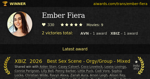 Shared win with Aiden Starr, Casey Calvert, Coco Lovelock, Leana Lovings, Connie Perignon, Lilly Bell, Penny Barber, Little Puck, Codi Vore, Sophia Locke, Christian Wilde, Ravyn Alexa, Zariah Aura, Arson Leigh, Alison Rey, Vanessa Vega, Sherman Maus, Mickey Mod, Nicky Zeal for movie The Bottom Floor: Second Coming